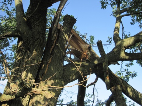 We had strong straight-line winds and nearby tornadoes on Tuesday/Wednesday night. The only damage we had was to an old oak along the lane. We are fortunate.